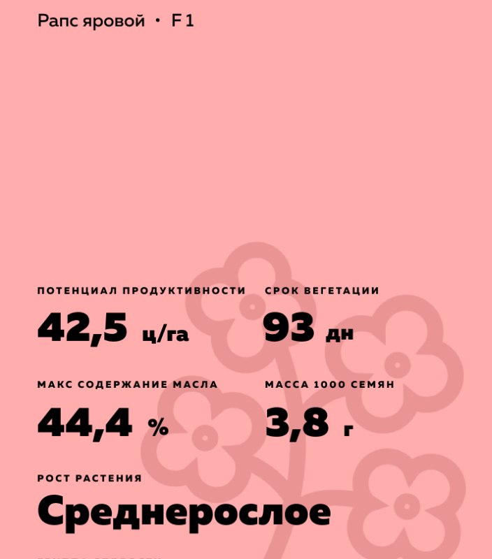 - Масса 1000 семян 3,8 г.