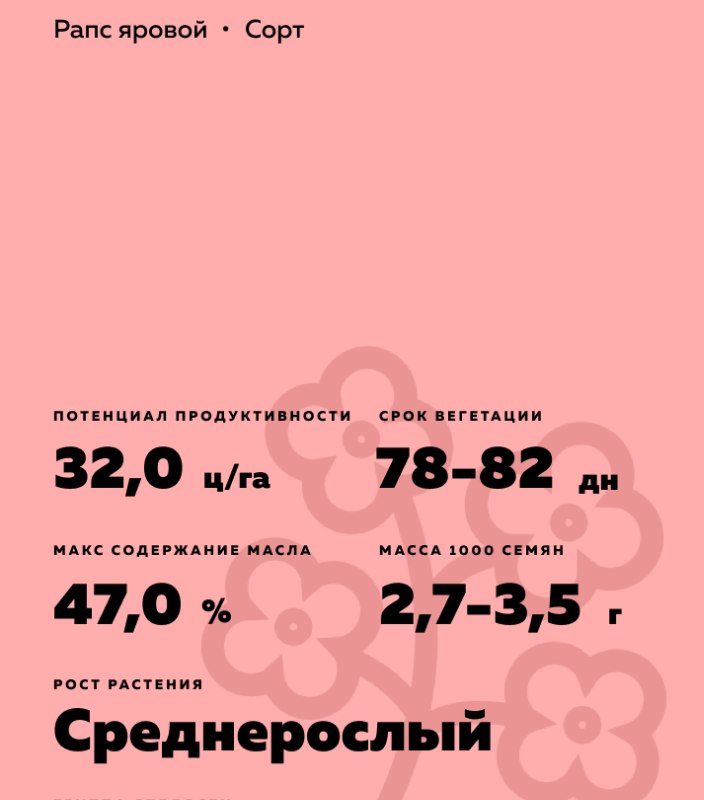 | Масса 1000 семян | 2.7-3.5 грамм |