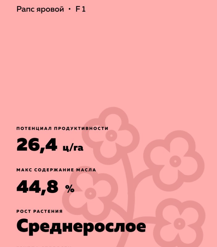Brassica napus var. napus). Гибрид 00 типа (безэруковый, низкоглюкозинолатный). Технология Clearfield®. Рекомендован для возделывания на семена.
