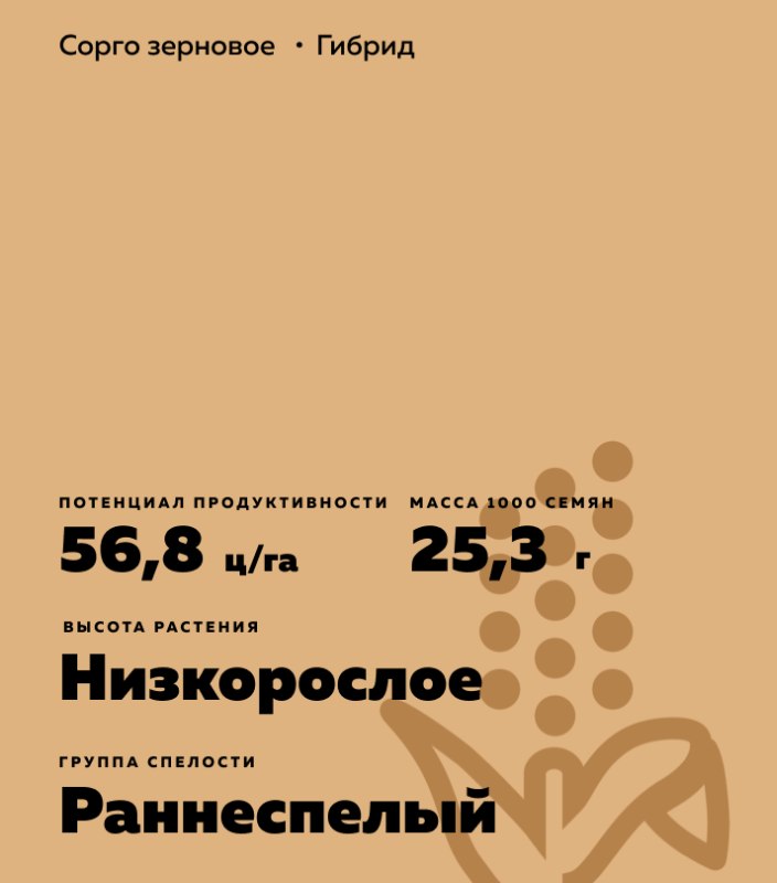 Sorghum bicolor (L.) Moench). Раннеспелый простой гибрид. Назначение гибрида по использованию продукции - производство зерна.
