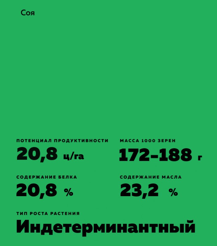 - Сорт содержит в среднем 37,4% белка и 23,0% жира. Максимальное содержание белка по данным оригинатора - 42,1%.