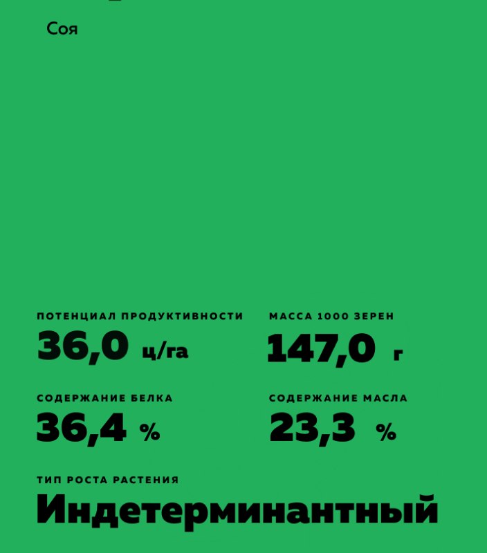 Glycine max (L.) Merr .). Среднеранний, индетерминантный. Сорт устойчив к растрескиванию бобов при перестое.