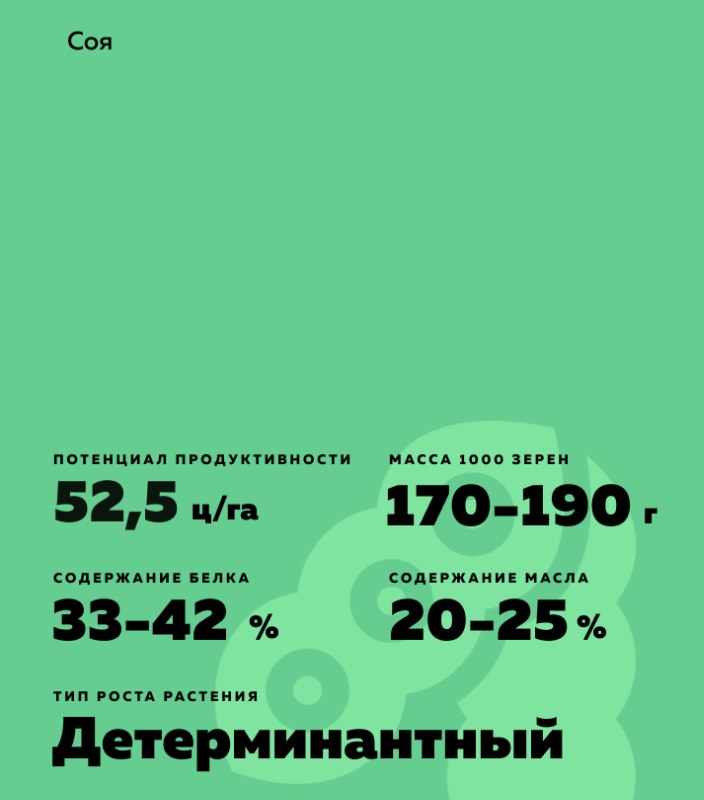 | Масса 1000 семян | 170-190 грамм |
