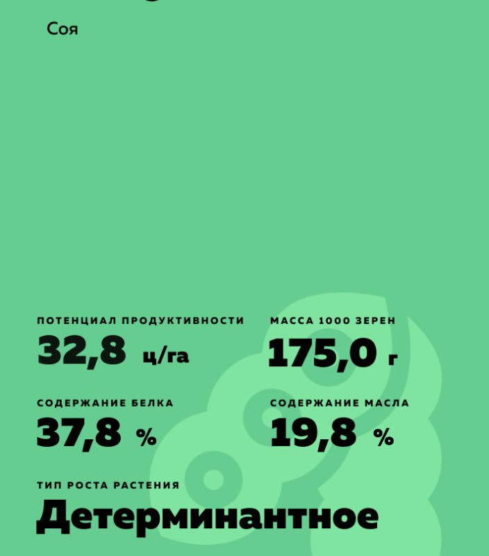 | Масса 1000 семян | 175 грамм |