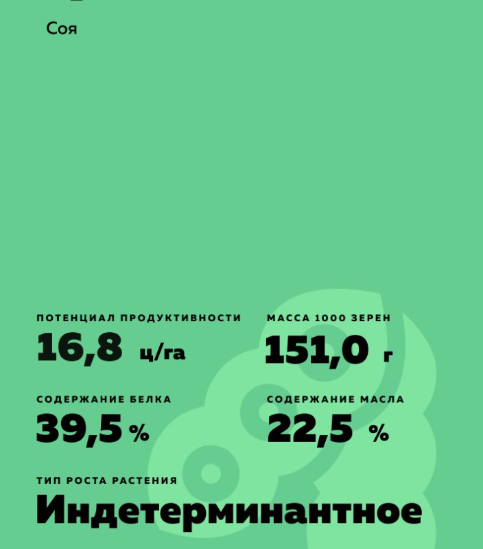Glycine max (L.) Merr .). Среднеранний. Отличается увеличенной засухоустойчивостью, повышенной холодо- и заморозкоустойчивостью, а также слабо реагирует на изменение длины дня.