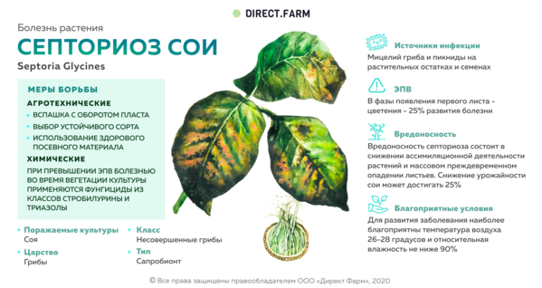 Возбудитель церкоспороза сои — узкоспециализированный патоген, поражает только растения сои. Опасное заболевание, так как оно приводит к большим потерям урожайности и его качества.