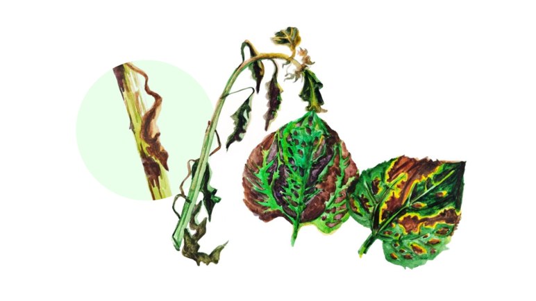 В фазу 3-4 пар настоящих листьев - первые признаки заболевания.