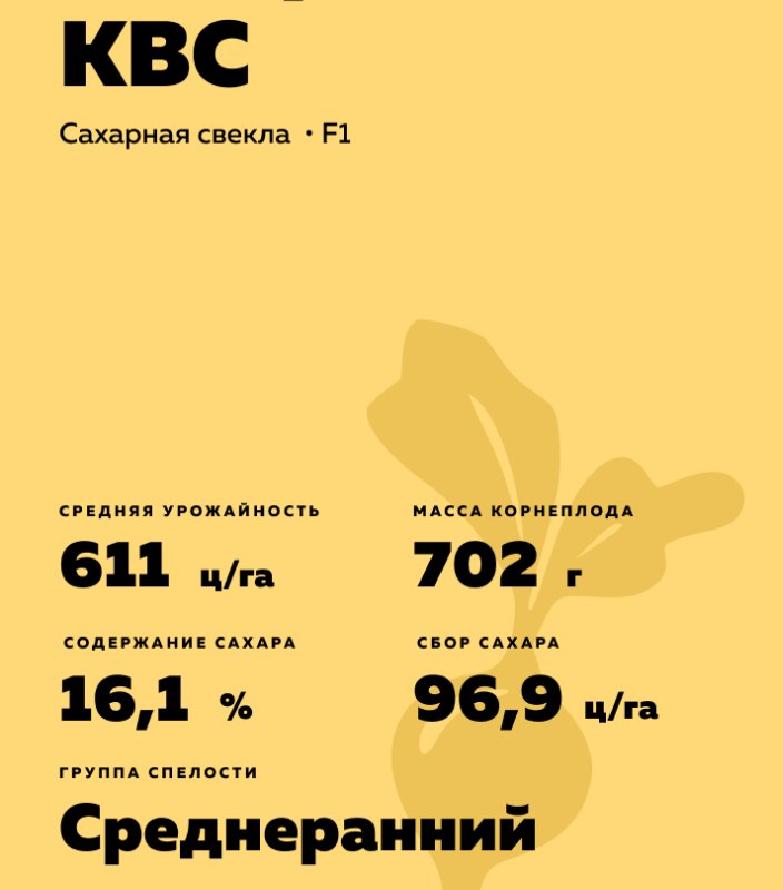 - В Краснодарском крае превысил стандарт по сбору сахара на 9,1 ц/га. За годы испытаний в полевых условиях региона слабо поражался церкоспорозом.