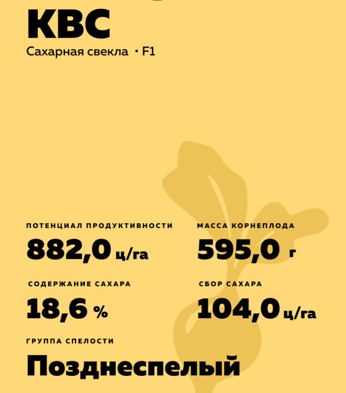 Концертина КВС - гибрид свеклы сахарной (Beta vulgaris L. ssp. vulgaris var. saccharifera Alef.). Одноростковый диплоидный гибрид на стерильной основе NZ-тип. Тип растения: сахаристый-позднеспелый.