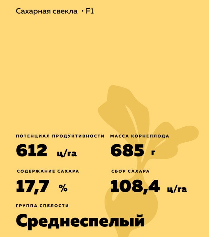 Beta vulgaris L. ssp. vulgaris var. saccharifera Alef.). Одноростковый диплоидный гибрид на стерильной основе. Нормально-сахаристый тип NZ.