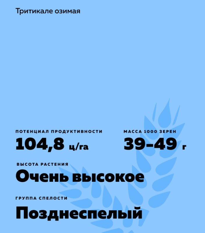- Колошение позднее. Вегетационный период 306-329 дней.