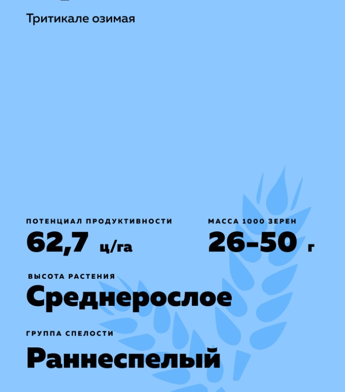 X Triticosecale Wittm. ex A. Camus). Зерновое направление использования - для зернофуража, спирта, пива и др.