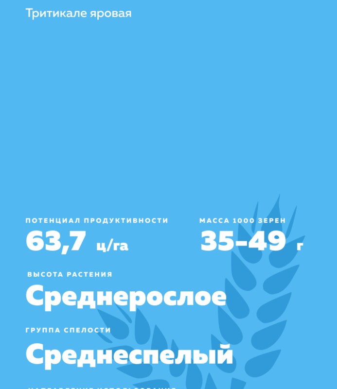 X Triticosecale Wittm. ex A. Camus). Рекомендуется для использования в кормовых целях для производства зернофуража и зерносенажа.
