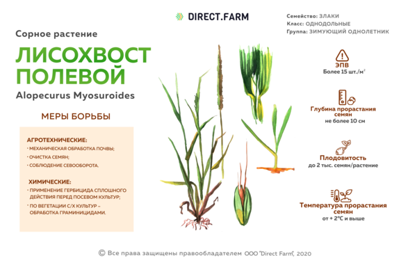 Лисохвост полевой – однолетнее сорное растение, но также может быть и зимующим. Засоряет в основном озимые зерновые, озимый рапс, пропашные, масличные культуры, лен, многолетние травы.