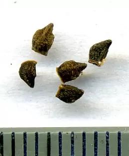 - Орешек серовато или темно - коричневого цвета. Размер: 2,5-2,5 х 1,25-2,25 х 1,25-1,75 мм. Масса 1 000 семян.