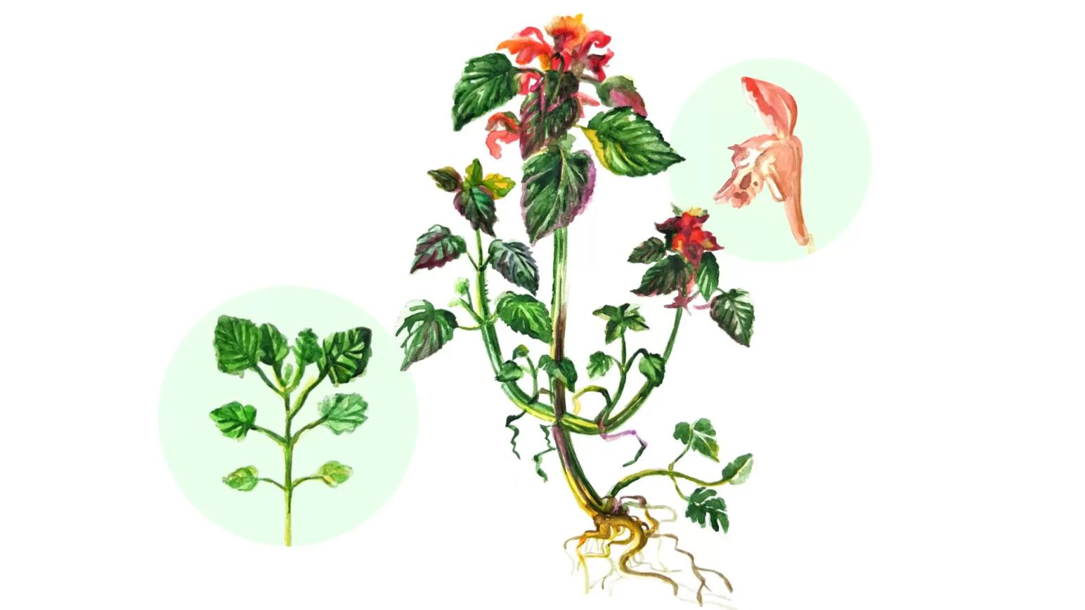 🔷 Отдельные цветки имеют двугубый венчик. Нижняя губа длиннее.