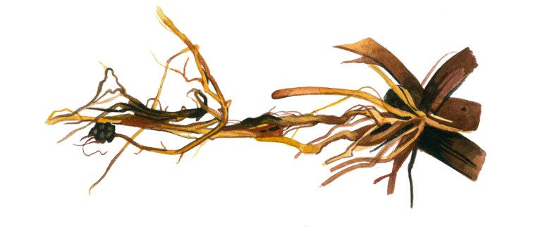 корневая система пораженных проростков менее развита относительно здоровых растений;