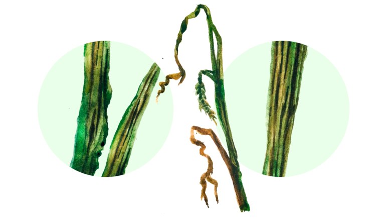 🔶 Симптомы:отмечается появлением на стеблях, листьях и листовых влагалищах выпуклых продольных полос. На начальных стадиях заболевания полосы имеют светлые оттенки, а в дальнейшем они приобретают тёмно-серую окраску. Длина полос составляет 2 мм-3 см. Верхние покровы тканей растения на полосах со временем высыхают, затем трескаются, и на поверхности оказывается темная пылящая масса телиоспор.