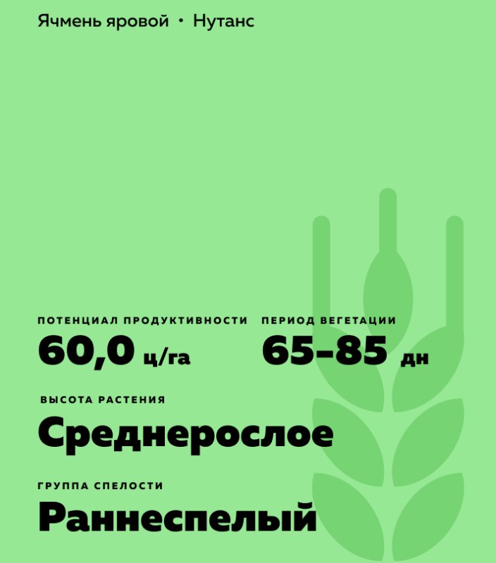 Hordeum vulgare L.). Раннеспелый. Ценный по качеству.