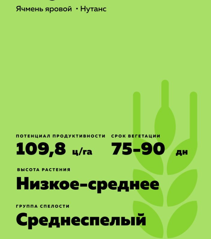 Hordeum vulgare L.). Среднеспелый, среднерослый. Высокоадаптивный сорт, на ранних этапах развития устойчив к холодным стрессовым факторам. Направление использования: Пивоваренное и фуражное.
