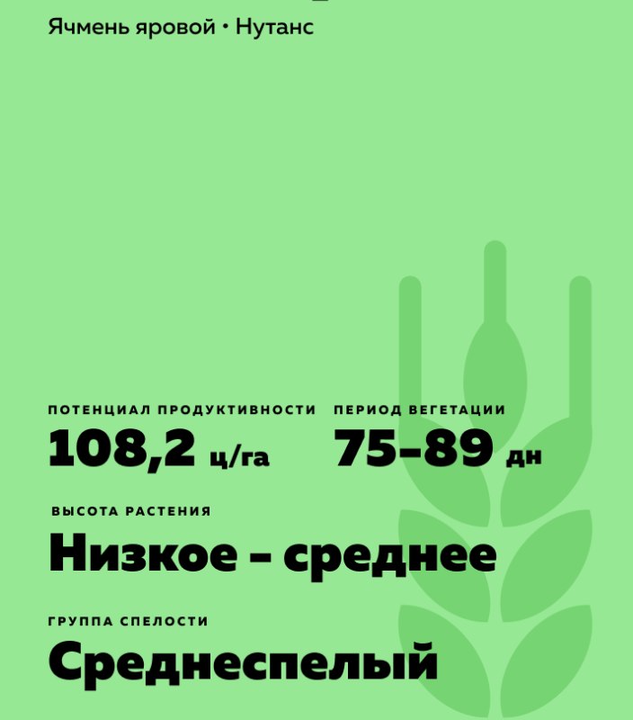 Hordeum vulgare L.). Среднеспелый. Высокопродуктивная кустистость.