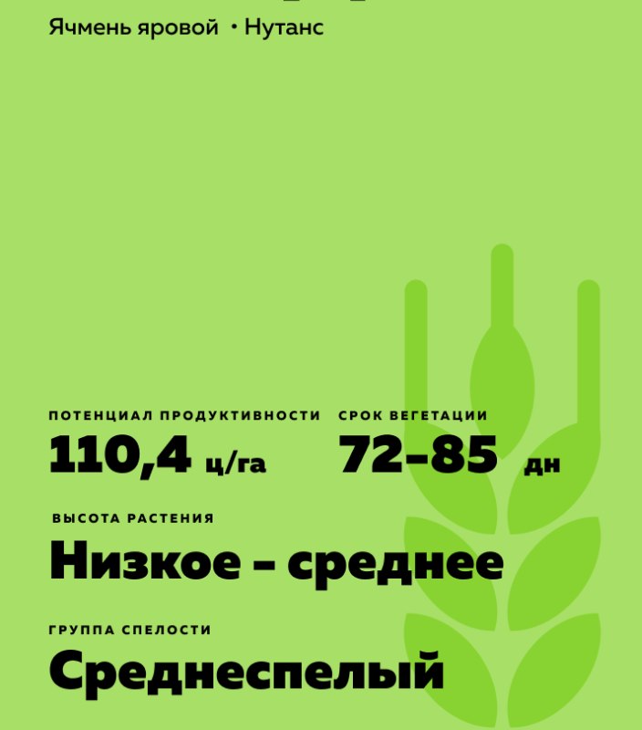 Hordeum vulgare L.). Среднеспелый. Низкорослый. Пивоваренный. Стабильность пивоваренных качеств отвечает требованиям светлых типов солода.