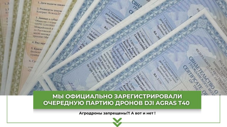 Мы официально зарегистрировали очередную партию дронов DJI Agras T40 и готовим документы для наших клиентов!