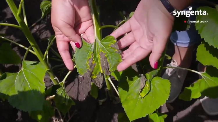 Агрономы, основываясь на фотографии поражённого подсолнечника, определили, что это признаки заболевания альтернариоз. Также специалисты дали свои рекомендации по борьбе с этим патогеном.
