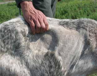 Кондиция 3- Дорсальные отростки позвоночника более гладкие, и необходимо легкое надавливания для их прощупывания