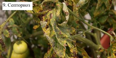Септориозная пятнистость, также называемая септориозной гнилью, вызывается Septoria lycopersici. Это наносит большой ущерб производству томатов во всем мире. Самое раннее сообщение о септориозе в Соединенных Штатах поступило от Byron D. Halsted за период с 1894 по 1895 г. С тех пор болезнь распространилась по всему миру. Заболеваемость значительно повышается летом, когда температура достигает своего пика и выпадает большое количество осадков. Когда температура превышает 25 °C и листья остаются влажными в течение длительного времени, урожайность томатов может снизиться более чем на 50%. Возбудитель в основном распространяется через зараженные семена, но также может сохраняться в растительных остатках в течение длительного времени. Септориоз поражает растения на любой стадии роста при температуре 20…25 °C в сочетании с высокой влажностью и ливнями. В таких условиях гриб сначала поражает старые листья, вызывая появление круглых пятен с темно-коричневыми краями и коричневыми или серыми центрами. На пятнах развиваются черные пикниды, далее затрагивается вся площадm листа. Заболевание также проявляется в виде небольших темных поражений диаметром 1-8 мм на стеблях, цветоносах и чашечках. В конечном итоге это приводит к значительному снижению урожайности не только из-за потери фотосинтетической площади, но и росту восприимчивости плодов к солнечным ожогам. В тяжелых случаях потери урожая томатов достигают 100%.