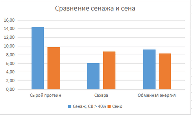 В кормовом отношении сенаж, безусловно, предпочтительнее сена. Сохранность питательных веществ и витаминов в нем выше, чем в сене. При заготовке корма потери таких ценных частей растений как листья, у сенажа значительно ниже за счет подбора и прессования при большей влажности. Поедаемость качественного сенажа, как правило, лучше сена. Кроме того, сенаж можно считать универсальным кормом, т.к. им можно во многом заменить как сено, так и силос.
