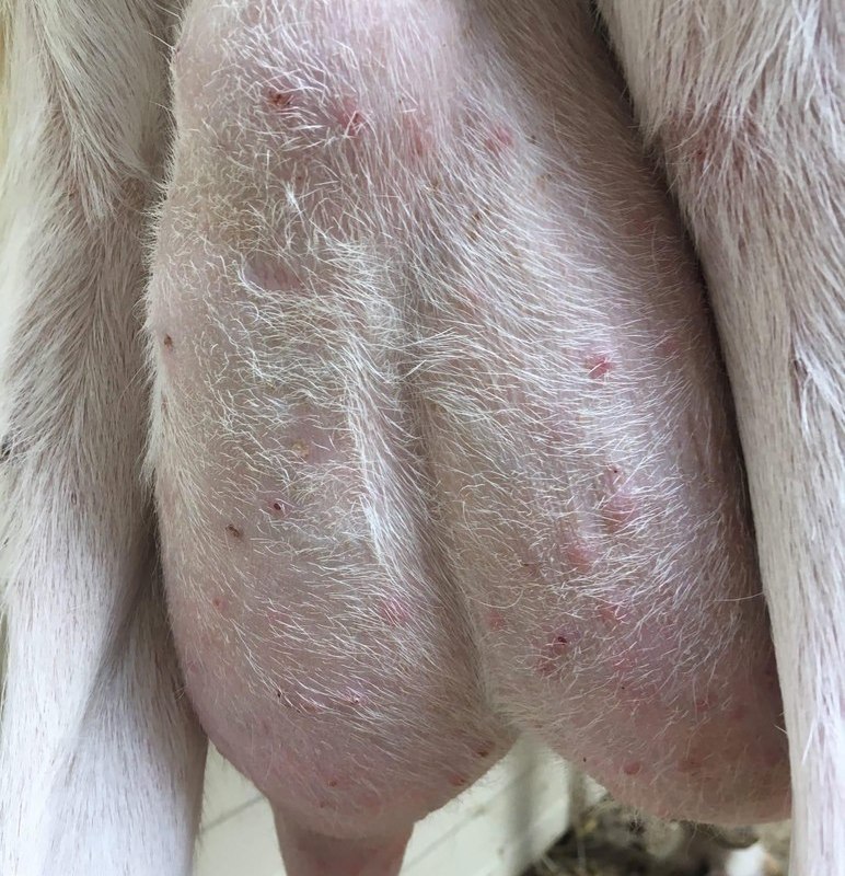 Подскажите, что это может быть на вымени у козы? Чем лечить?