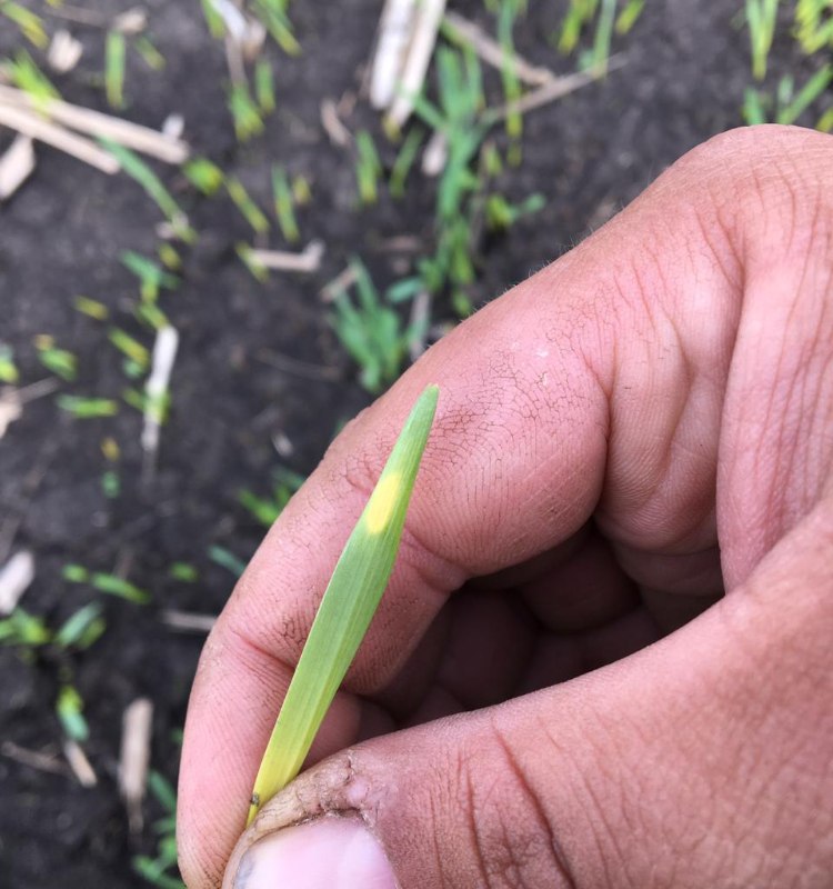 ВОПРОС: Ячмень, на всходах буквально за несколько дней это появилось! В чем может быть причина? Это азотное голодание? Может ли сказаться холодная погода? Семена протравливались, взошли неделю как. Предшественник подсолнечник.