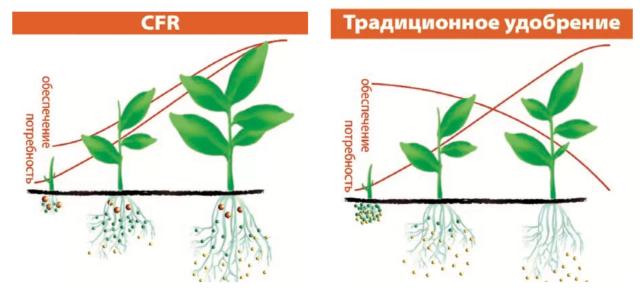 Преимущества перед простыми удобрениями: Равномерно выделяются в зону корня ( эффективно используются до 80% и без потерь) и этим исключают возможность возникновения стресса у культуры, тем самым подавляется и образование болезней на листовом аппарате из-за постоянной стабильности иммунитета у растения за счёт элементов питания. Кроме этого, эти удобрения компенсируют потребность элементов питания у культуры до конца сезона - а значит допустима прибавка к урожайности от 10 до 40%.