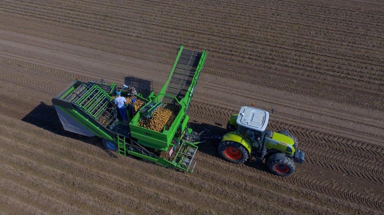 Уборочные работы проводились на тяжело-суглинистых почвах при сухой погоде. Урожайность культуры составляла 42 т/га с максимальной глубиной залегания клубней в гребне в 22 см. Всего машина убрала 400 т картофеля за 16 часов работы без потерь как товарного, так и семенного картофеля. С учетом использования в хозяйстве технологии обогащения, когда между гребнями укладывается два рядка, комбайн одновременно убирал сразу 4 рядка, благодаря чему бункер заполнялся всего за 13 минут. На его выгрузку уходило не более 2 минут.