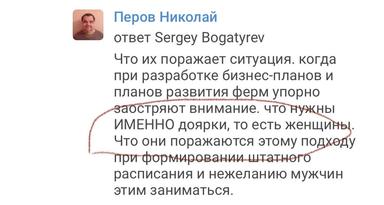 Можно было бы не говорить на эту тему, но эта традиция мешает развитию .По старой привычке дояркам платят меньше, чем представителям "мужских профессий" и они на ферме не задерживаются.