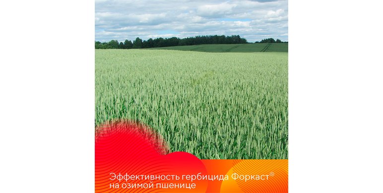 Осенью 2024 г. Форкаст® в норме 1,2 л/га применили в КФХ «Калина» Калининградской области на озимой пшенице в фазе 3 - 4 листьев культуры. Исходная засоренность поля была высокой – 549 шт/м². Чаще всего в посевах встречались, %: звездчатка средняя (30), ярутка полевая (18), падалица тмина (13), вероника посевная (9) и др.