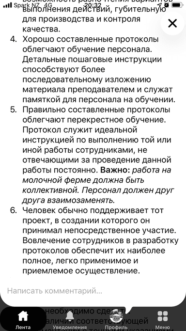 - Правильно составленные протоколы облегчают перекрестное обучение. Протокол служит идеальной инструкцией по выполнению той или иной работы сотрудниками, не отвечающими за проведение данной работы постоянно. Важно: работа на молочной ферме должна быть коллективной. Персонал должен друг друга взаимозаменять.