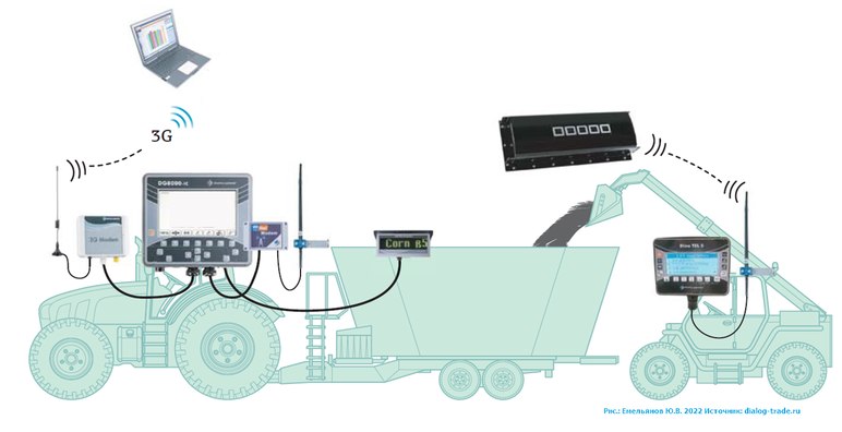 По сути, система мониторинга за кормлением – это набор весовых датчиков, которые устанавливаются на кормовой прицепной или самоходный миксер. Все поступаемые через них данные регистрируются и накапливаются в отдельной информационной системе.