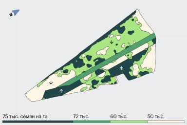 Карта-задание с распределением нормы высева на поле тоже в приложении.