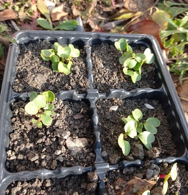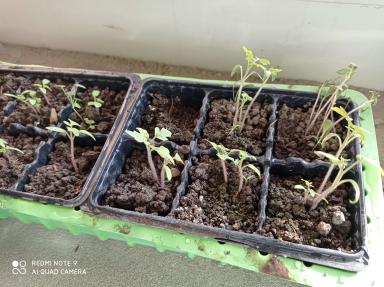 Одну часть я высадил в ячейки и поместил в помещении, а другую часть я вынес на улицу.