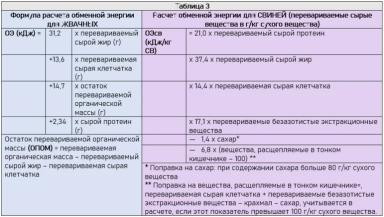 - Расчет обменной энергии для свиней (перевариваемые сырые вещества в г/кг сухого вещества) – Таблица 3
