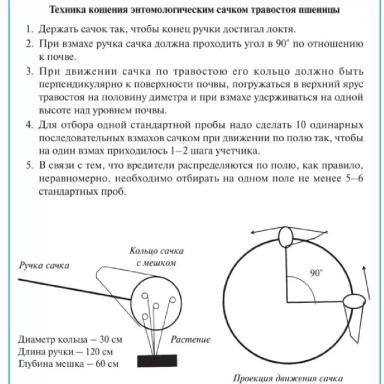 На практике рекомендуется 10 одинарных взмахов сачком, близких по значению численности вредителя на 1 м2.