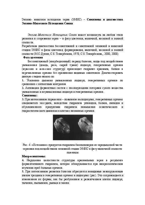 Энзимо-Микозного Истощения Семян может возникнуть на любом этапе развития и созревания зерна – в фазу цветения, молочной, восковой и полной спелости.