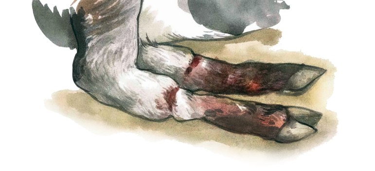 - Сухая гангрена дистальных отделов конечностей (линия на границе здоровой и пораженной ткани), кончика хвоста и ушей;