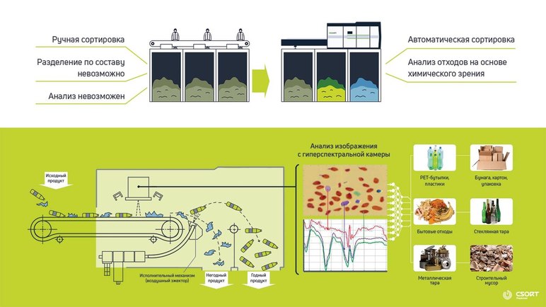 Два важных принципа работы фотосепаратора: идентификация материала по определенным признакам и разделение (сепарация) на годное и негодное сырье (условно можно назвать «отходы»), основаны на принципах роботизации.