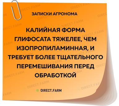 ПРАВИЛО №4. Учитывайте, какую соль глифосата вы будете использовать – калийную или изопропиламинную – они разные.