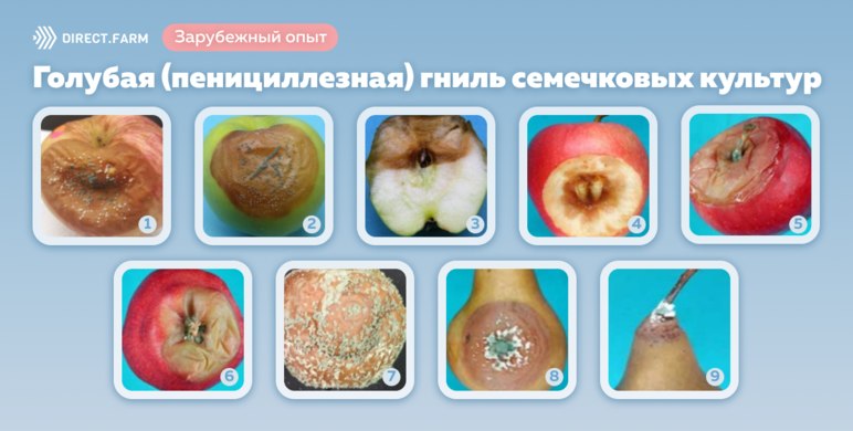 Голубая (пенициллезная) гниль – распространенная болезнь хранения плодов семечковых культур. Некоторые штаммы возбудителя заболевания, Penicillium expansum, выделяют патулин, микотоксин с мутагенным, нейротоксическим действием, оказывающим также негативное действие на ЖКТ (Ramalingam et al., 2019). Это проблема и для производителей продукции плодоводства, и для перерабатывающих предприятий. Предельной считают концентрацию патулина в продукции, превышающую 50 мкг/кг.