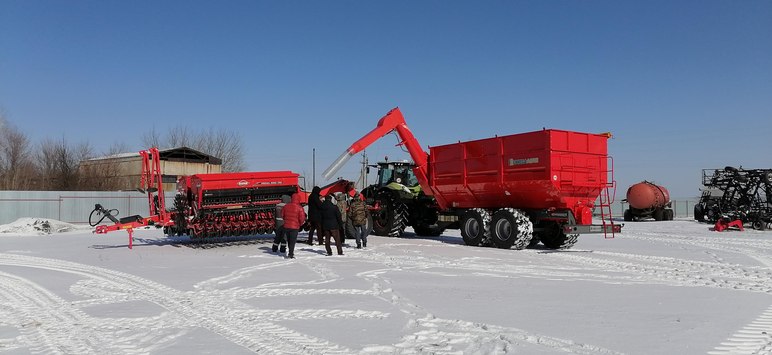 2. Затем бункер перегружает посевной материал в посевной комплекс.