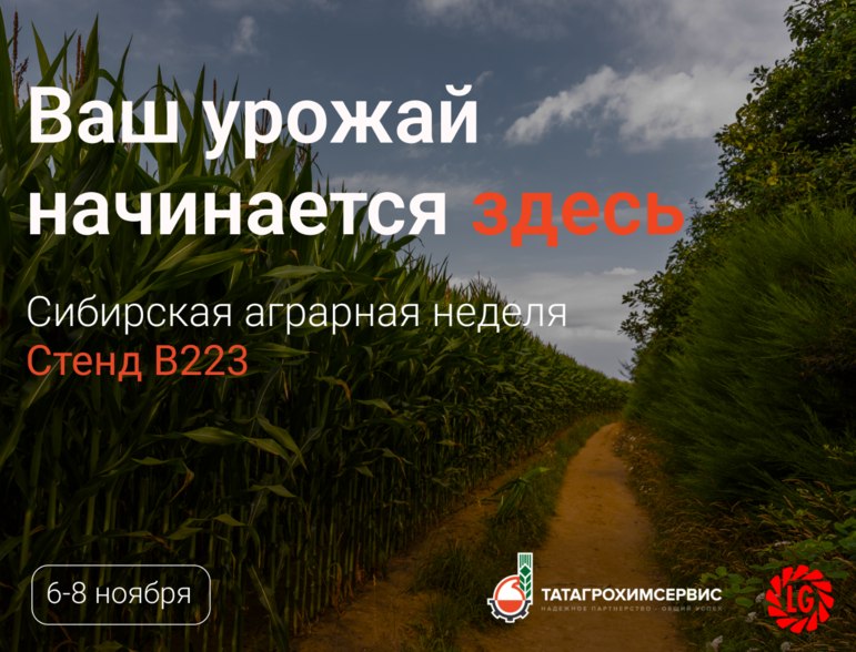 С 6 по 8 ноября на Сибирской аграрной неделе эксперты из «Татагрохимсервис» и Лимагрен проведут консультацию по выбору высокоурожайных семян кукурузы, подсолнечника и других культур.